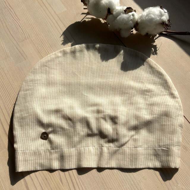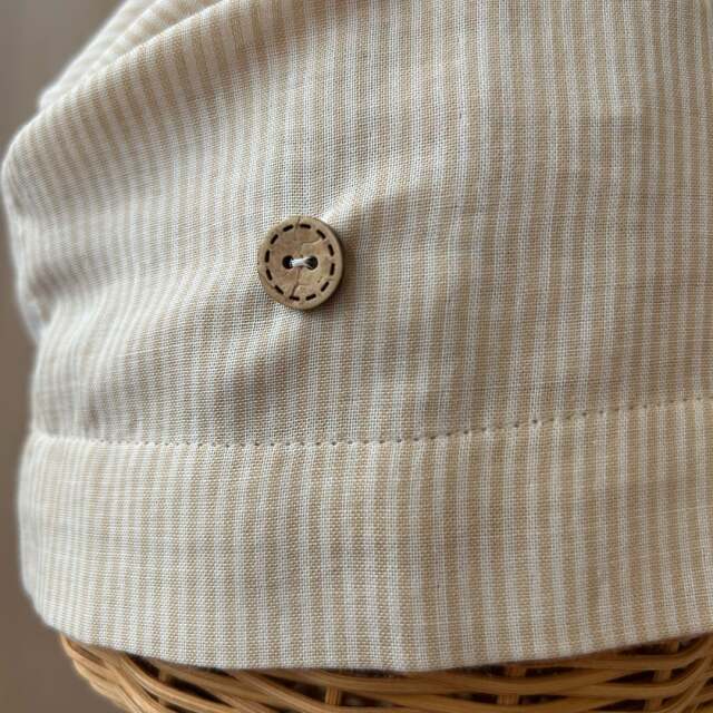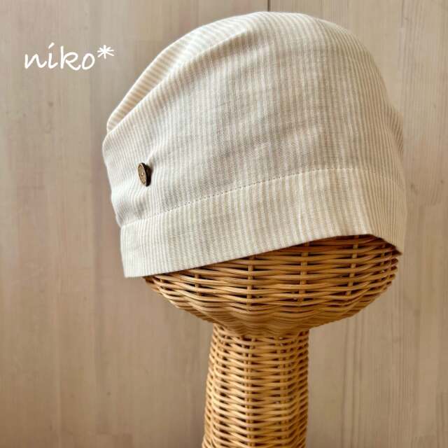 | 製品名 | ボタン付きガーゼキャップ(オーガニックストライプベージュ) |