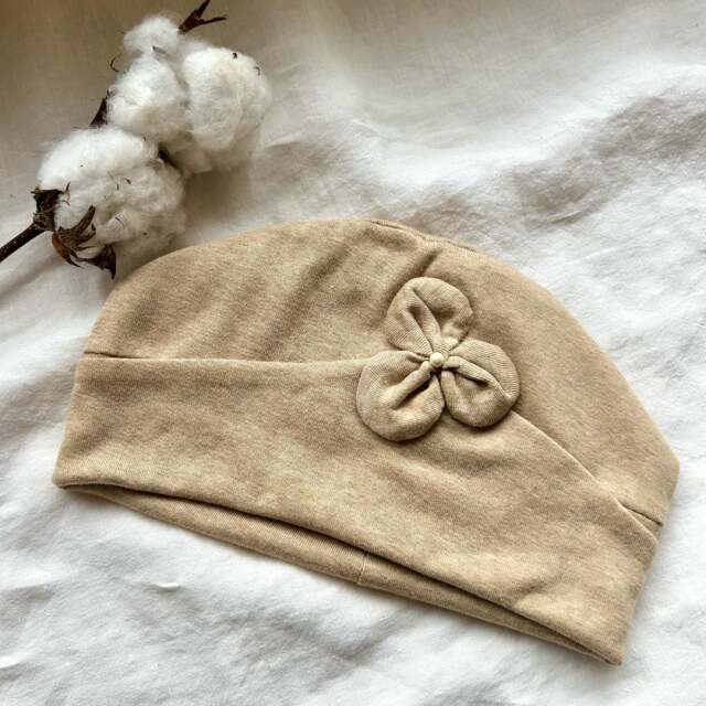 お花付きオーガニックコットン ニットキャップ