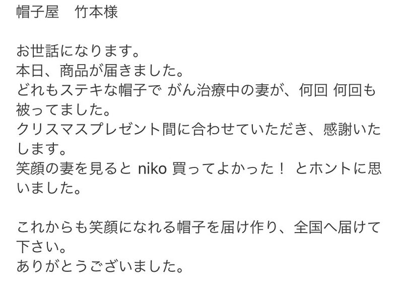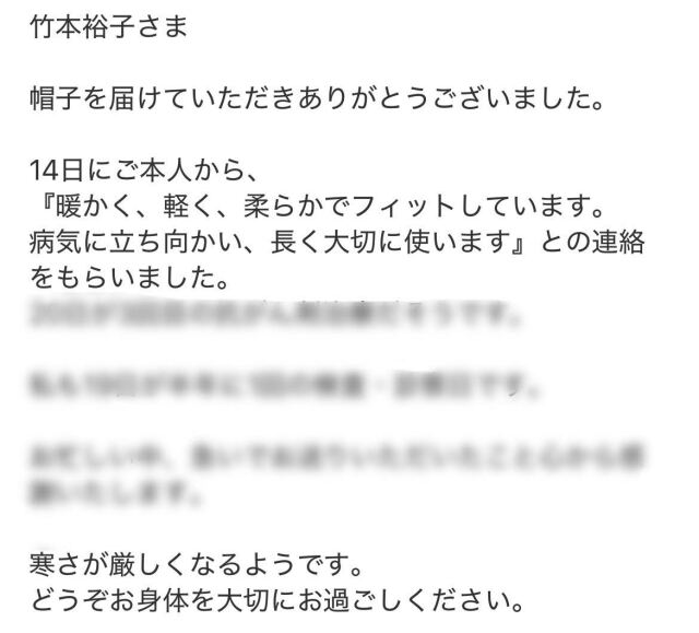私自身、抗がん剤治療中に帽子が必要だったとき
